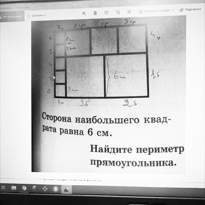 Но две стороны маленького квадрата наверху равны одной стороне среднего квадрата. Значит 2*2=4см - сторона среднего квадрата.Периметр большого прямоугольника состоит из 3 сторон большого+7 сторон маленького и 4 сторон среднего.