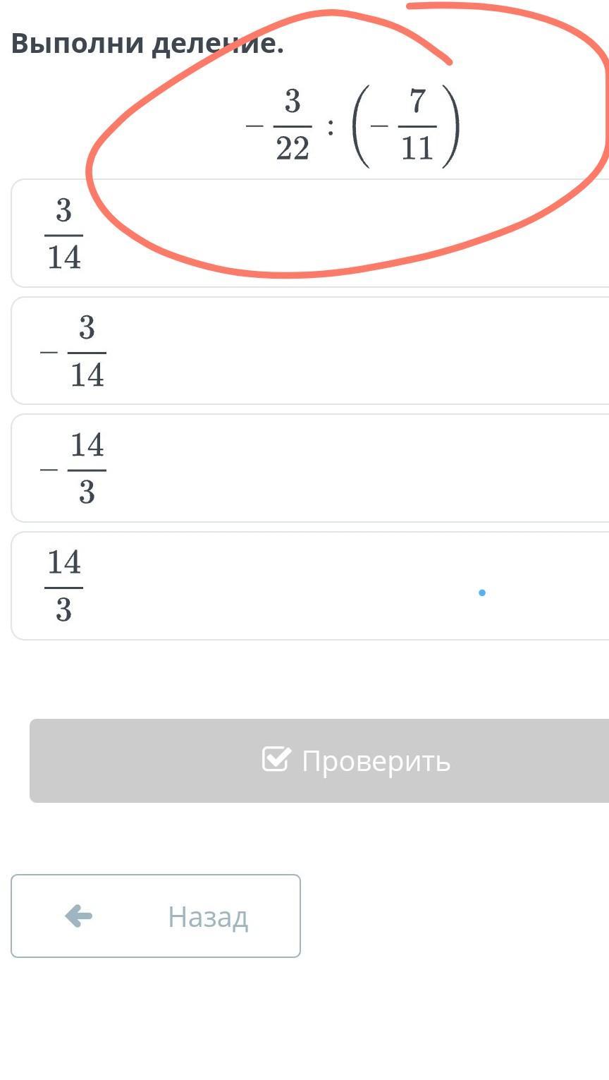 -3/22:(-7/11)=-3/22*(-11/7)=3/14