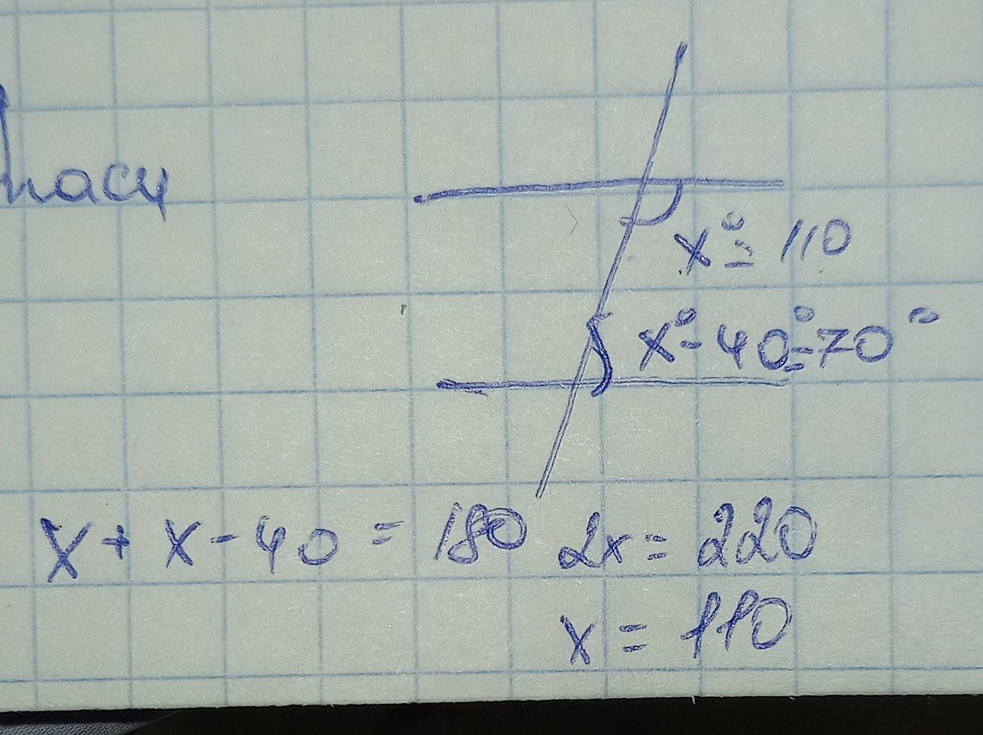 Різниця внутрішніх односторонніх кутів , утворених при перетині двох паралельних прямих січною, дорівнює 40 градусів.Знайдіть ці кути