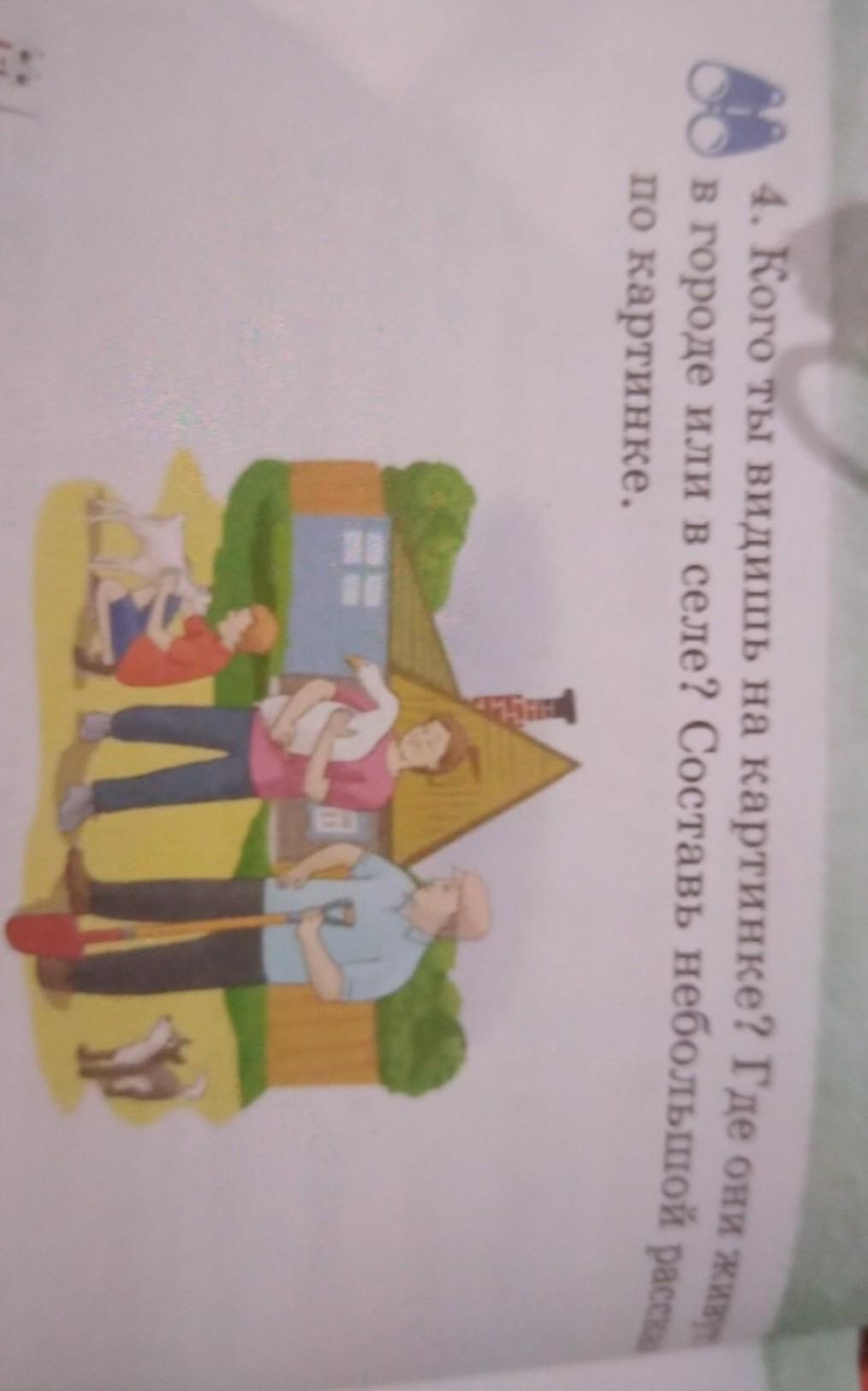 Ответ:на картине изображена семья из 3 человек проживающих в селе,это можно понять по местности. у семьи много животных это гусь и 2 собаки.