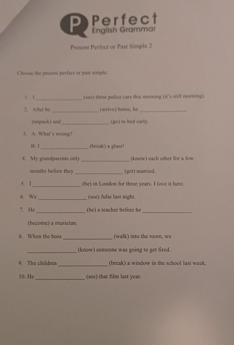 8. walked, knew