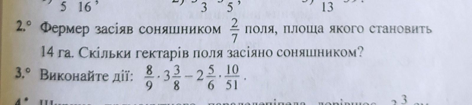 2° . 14 * 2/7 = 2 * 2 = 4 ( га ) - засіяно соняшником
