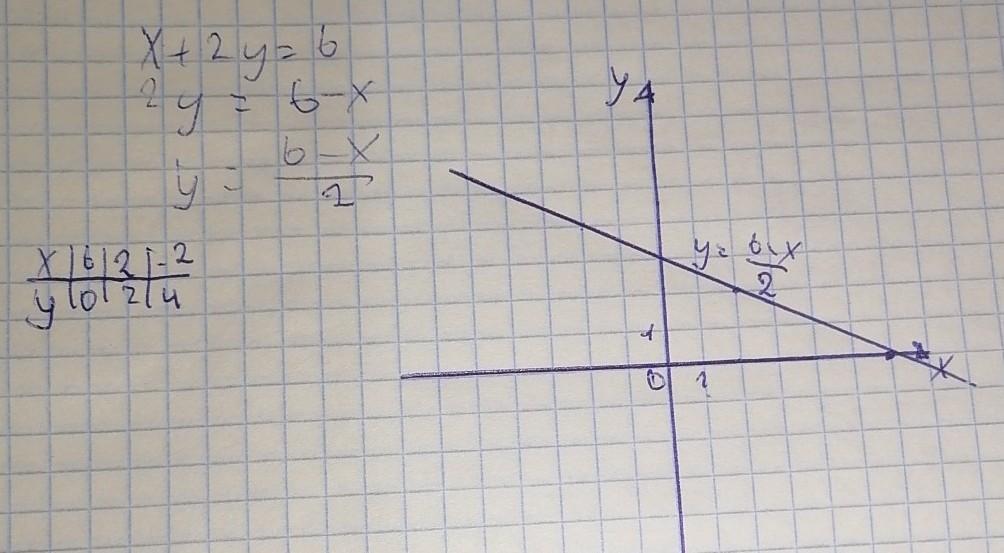 Составьте график уравнения x+2y=6