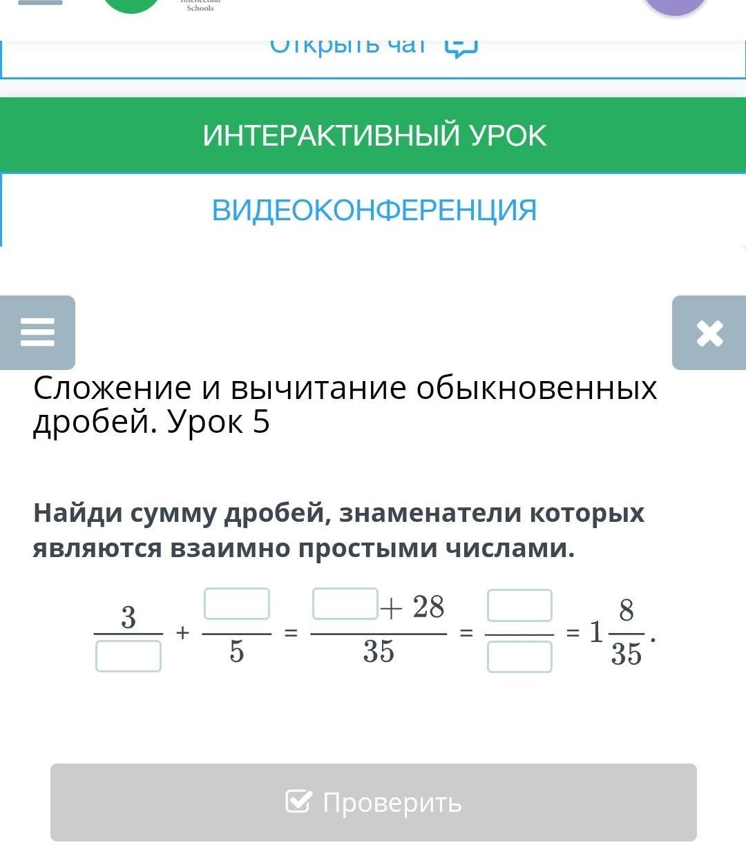 Сложение и вычитание обыкновенных дробей. Урок 5 Найди сумму дробей, знаменатели которых являются взаимно простыми числами. + = = = Назад Проверить