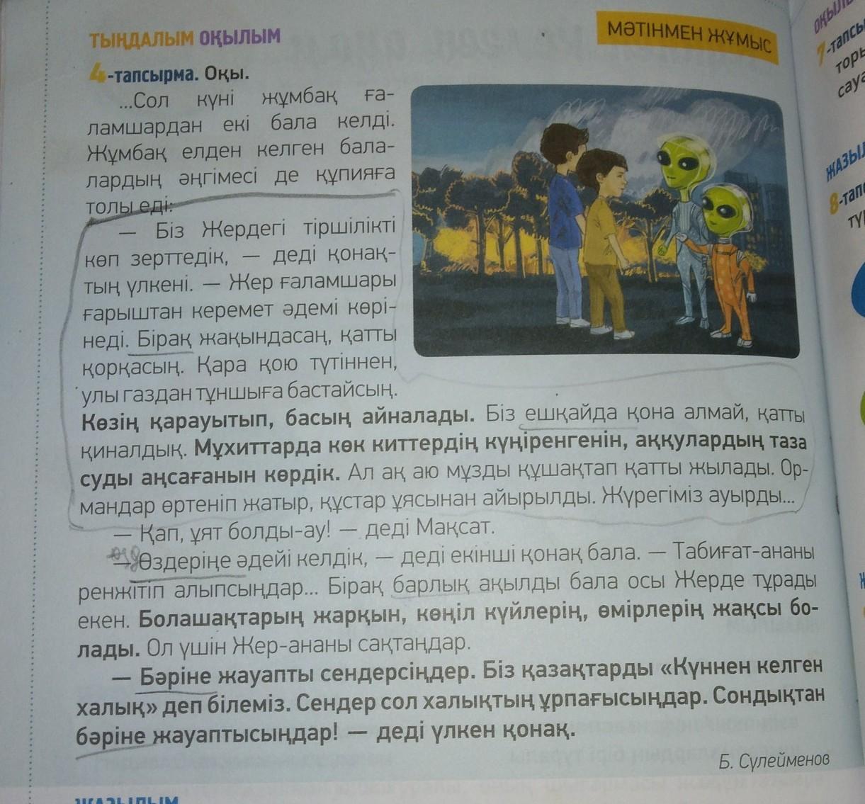 ЖАЗЫЛЫМ 5-тапсырма. Мұғалімнің көмегімен мәтіндегі қою қаріппен жазылған сөйлемдердің мағынасын анықтаңдар.