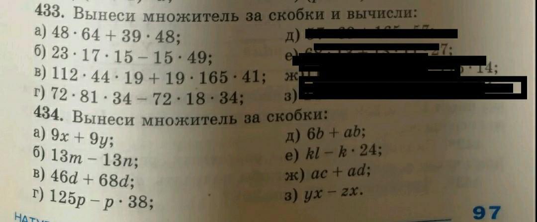 434 а) 9(x+y) б) 13(m-n)г)p(125-38)д)b(6+a)e)k(l-24)ж)а(c+d)з)x(y-z)