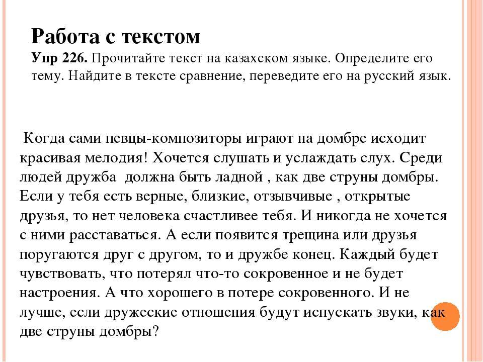 Прочитайте текст на казахском языке. Определите его тему. Найдите в тексте сравнение, переводите его на русский язык. 226упр стр107 СРОЧНОО!!!!!! 5класс 1часть