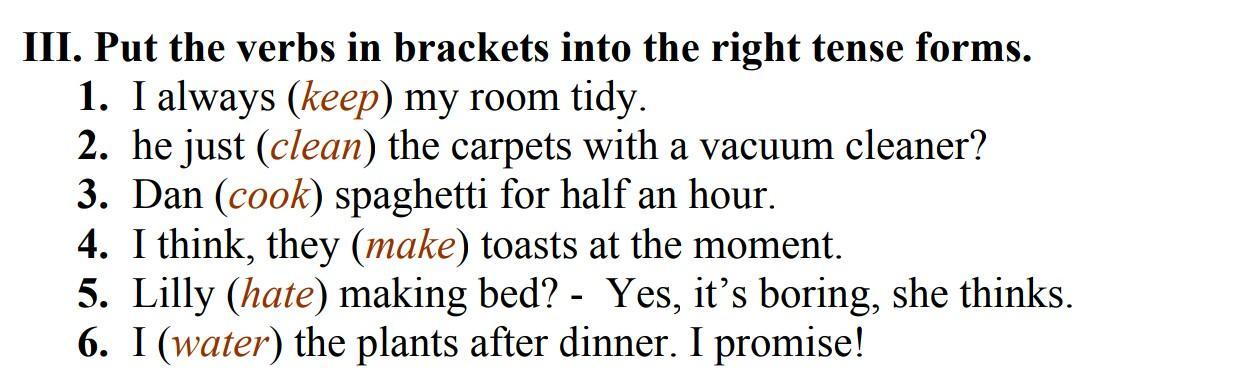 6. will water - потому что "я обещаю", значит будущее время