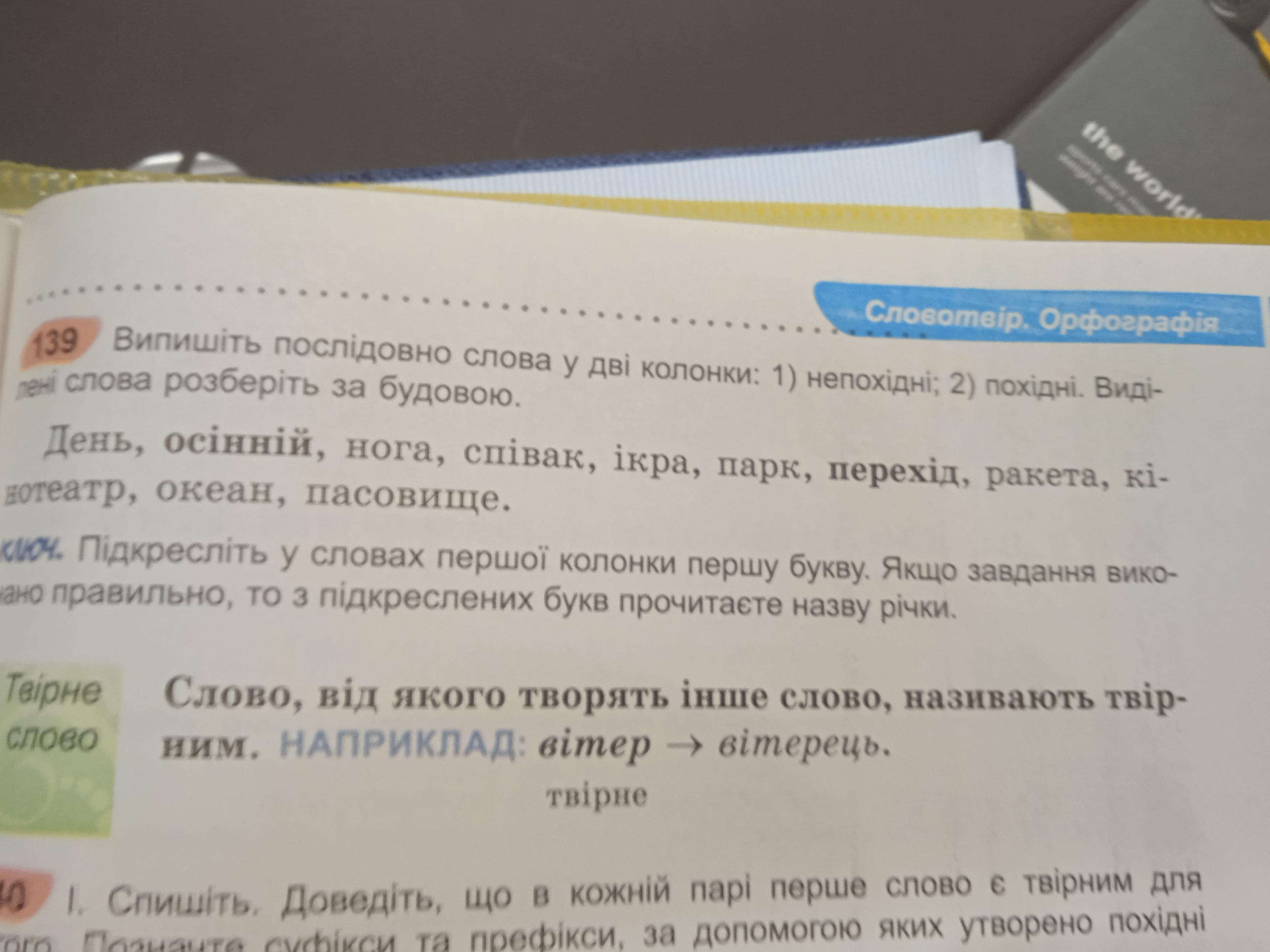 непохідні: день, нога, ікра, парк, ракета, океан.