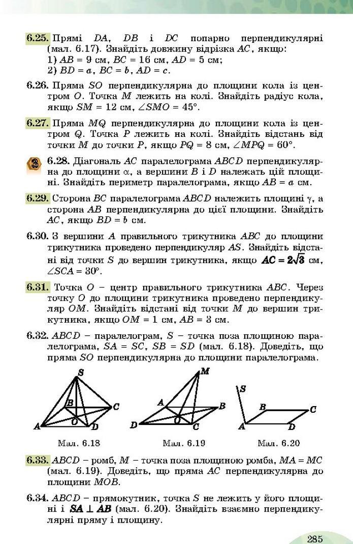 6.4 так як АР перпендикулярна двум прямим площини, що перетинаються, то АР перпендикулярна самій площині