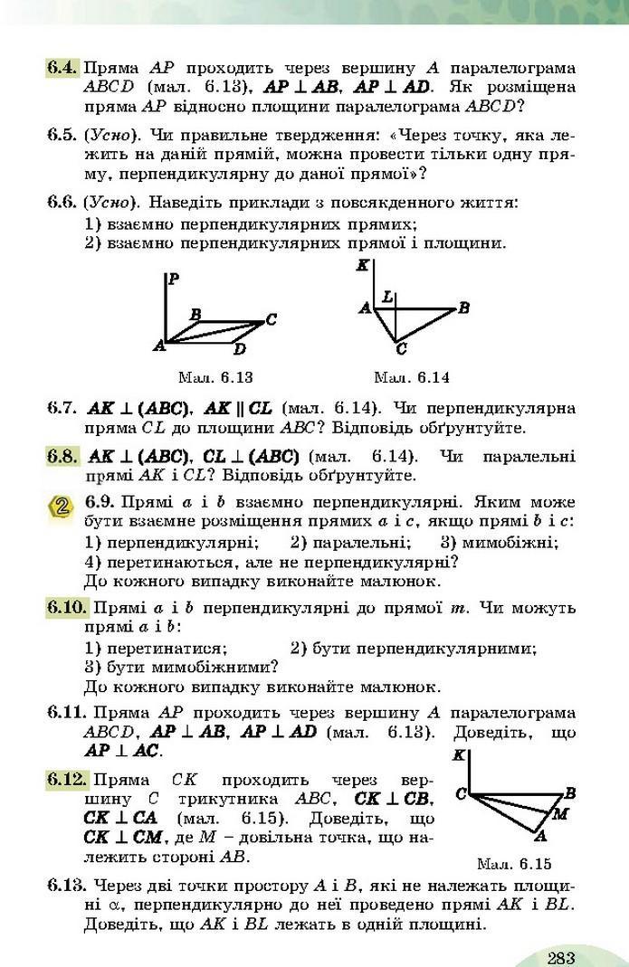 Якщо пряма перпендикулярна двом прямим на площині, які перетинаються, то вона перпендикулярна і самій площині