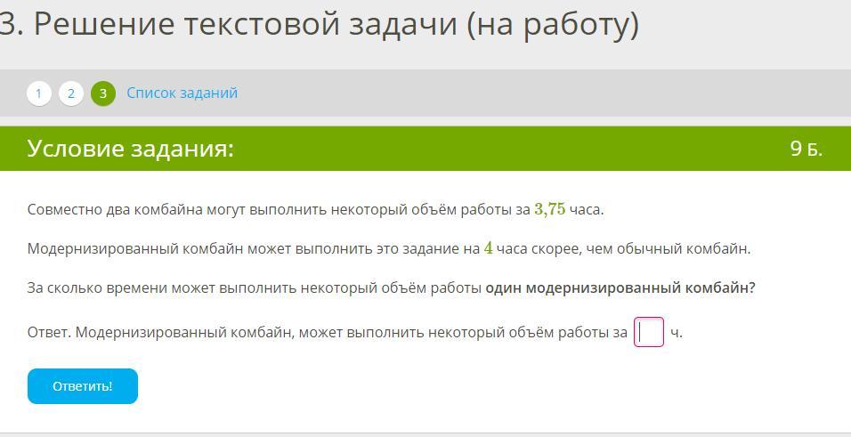 Ответ. Модернизированный комбайн, может выполнить некоторый объём работы за