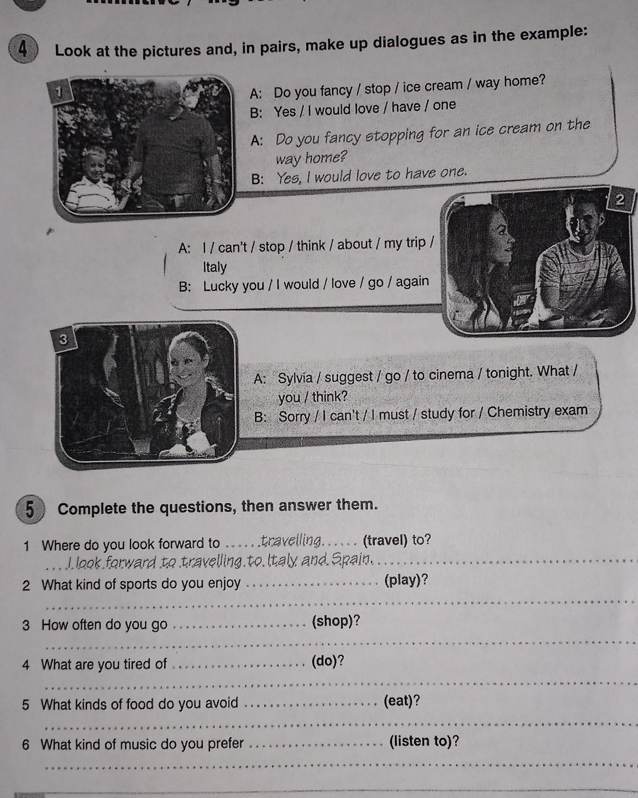 4) A: I can't stop thinking about my trip to Italy. B: Lucky you, I would love to go again.