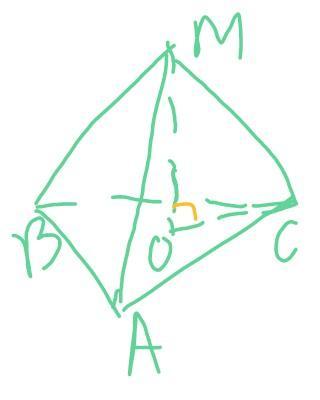 Оскільки пряма MO перпендикулярна до площини основи, то ця пряма буде перпендикулярна до будь-якої прямої, яка належить цій площині. ОС належить площині основи, тому пряма MO перпендикулярна до ОС.