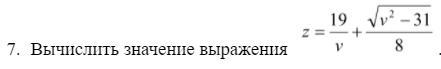 z := 19 / v + sqrt(sqr(v) - 31) / 8;