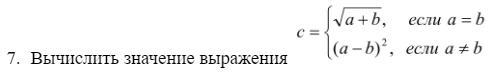 if a = b then c := sqrt(a + b) else c := sqr(a - b);