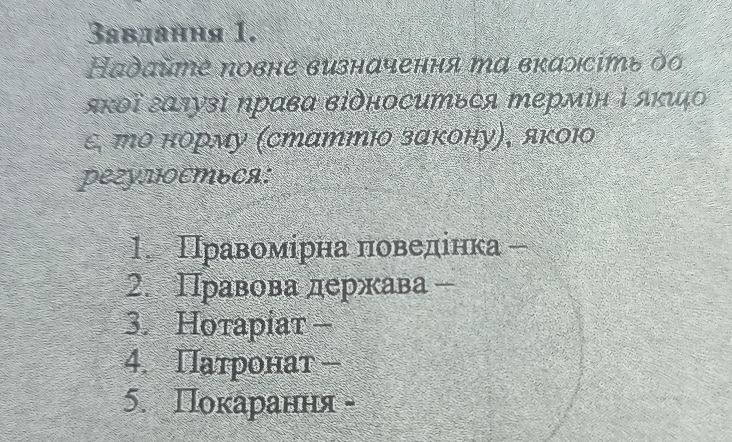 5. покара́ння — захід державного примусу, що застосовується від імені держави за вироком суду до особи, яка вчинила злочин, і полягає в передбаченому кримінальним законом в обмеженні прав і свобод засудженого.