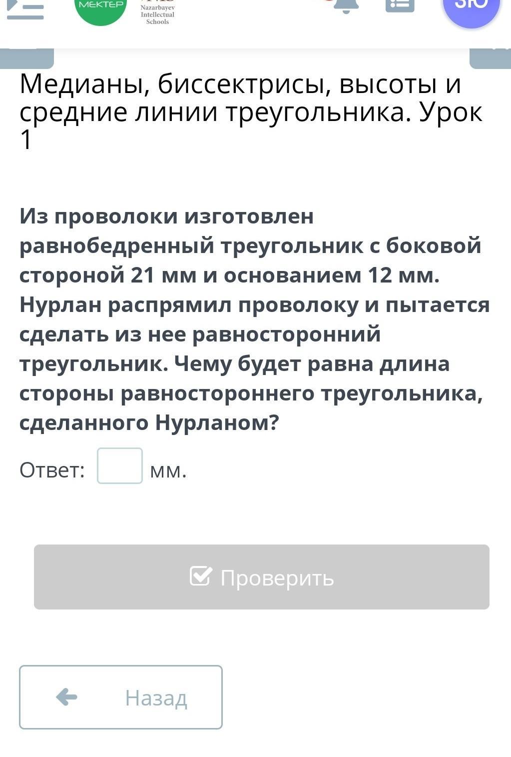 Из проволоки изготовлен равнобедренный треугольник с боковой стороной 21 мм и основанием 12 мм. Нурлан распрямил проволоку и пытается сделать из нее равносторонний треугольник. Чему будет равна длина стороны равностороннего треугольника, сделанного Нурланом?