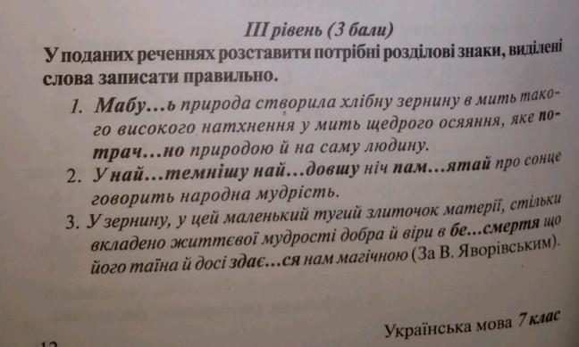 Відповідь:1.Мабуть, природа створила хлібну зернину в мить такого високого натхнення, у мить щедрого осяяні, яке потрачено природою й на саму людину.