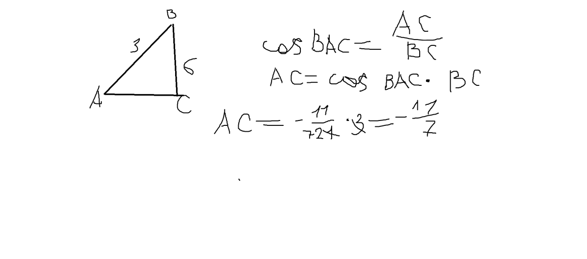 Длина вектора AB равна 3, длина вектора АВ+АС равна 6. Косинус угла ВАС равен -11/21. Найдите длину вектора АС.