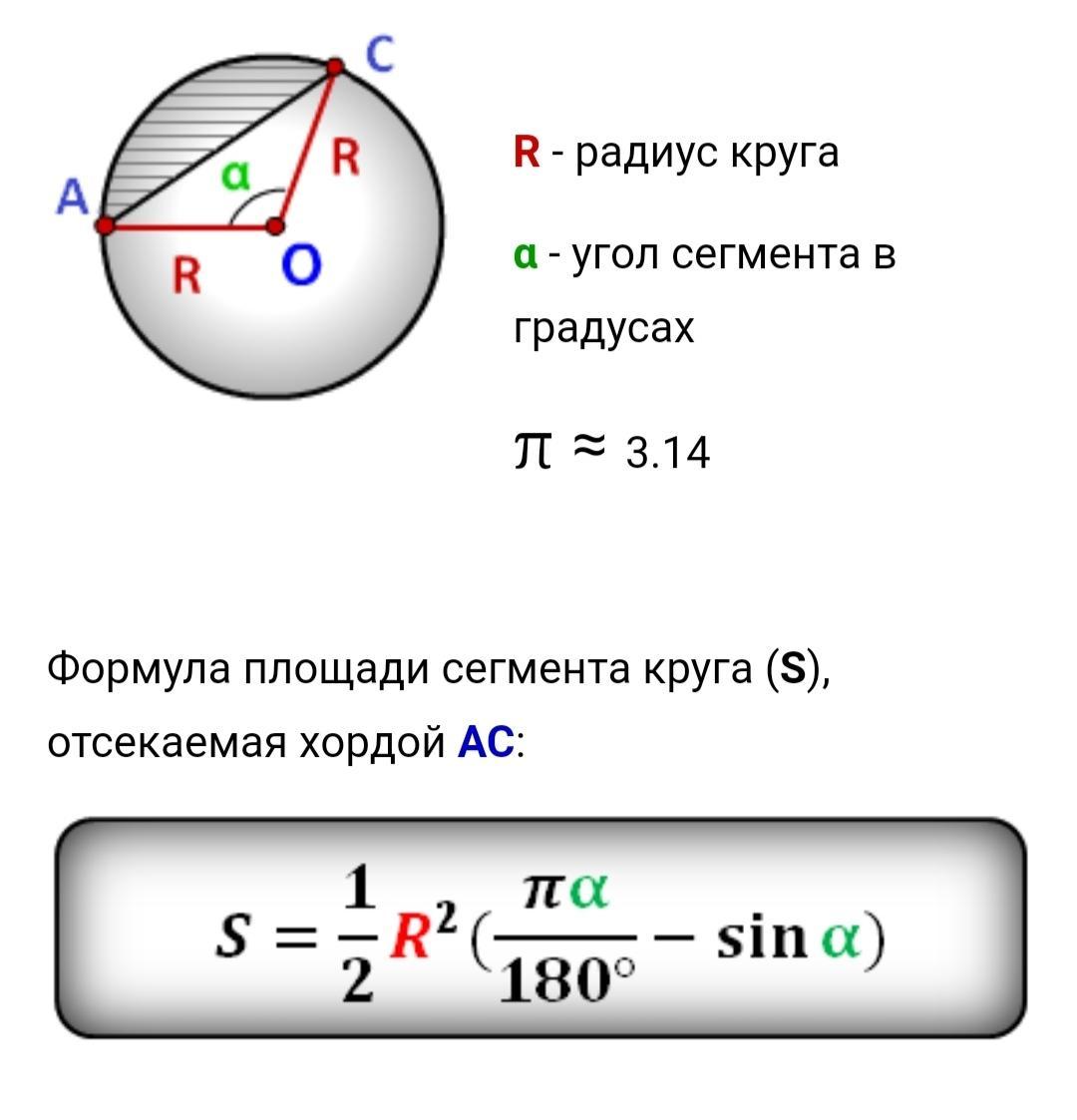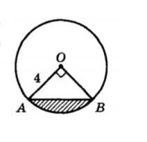 За даними рисунка знайдіть площу заштрихованого кругового сигмента, якщо точка О - центр кола, кут AOB = 90°