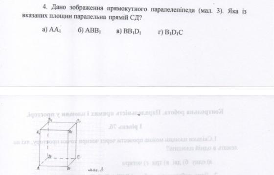 Дано зображення прямокутного паралелепипида. Яка з вказанних площин паралельня прямий CD
