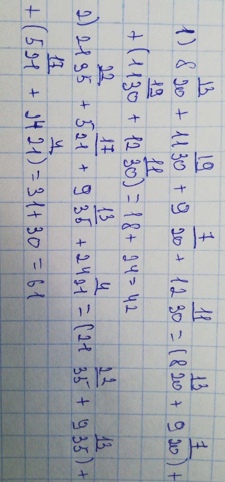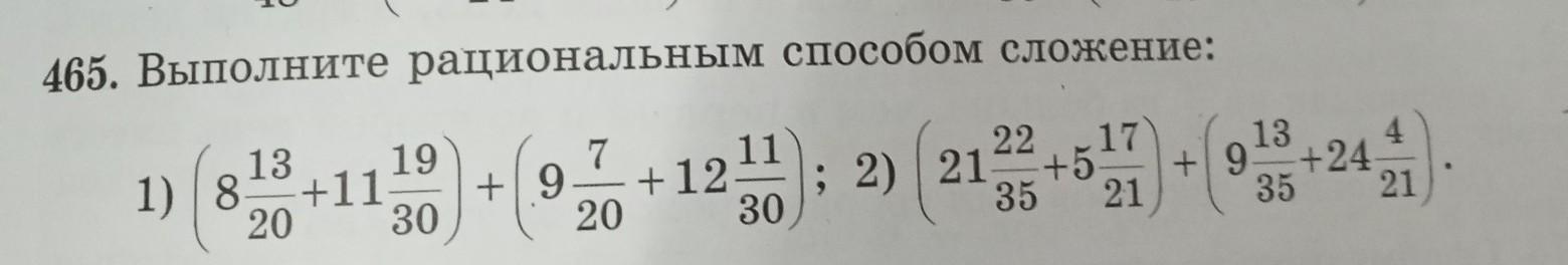 465. Выполните рациональным способом сложение: 13 +11 19 7 + 9 20 1) 8 20 +12 11 30 ; 2) 21 22 17 +5 35 21 13 4 + 9 +24 35 21 ). 30