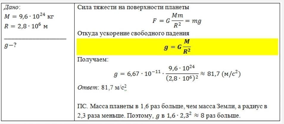 Каково будет ускорение свободного падения у поверхности открытой планеты? g = мс2. (Результат округли до одного знака после запятой.)