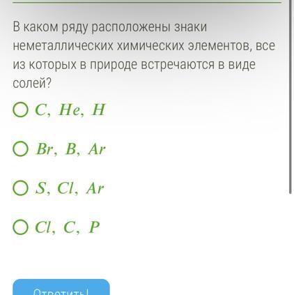 В каком ряду расположены знаки неметаллических химических элементов, все из которых в природе встречаются в виде солей?