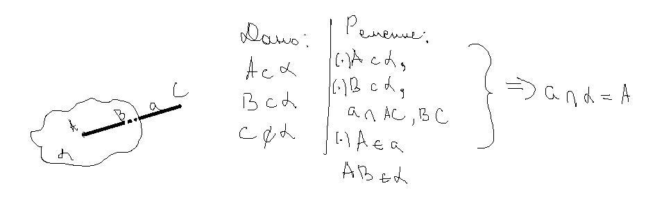 Точки A и B лежат в плоскости альфа. Точка C не лежит в плоскости альфа. Прямая a пересекает прямые AC и BC. Пересекаются ли прямая a и плоскость альфа? Если пересекаются, то где расположена точка их пересечения?