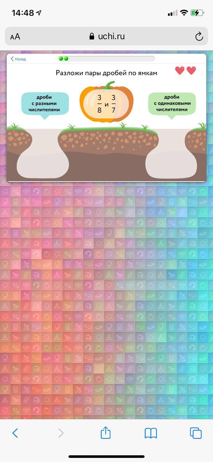 тыковку помести в правую ямку: "дроби с одинаковыми числителями" ))