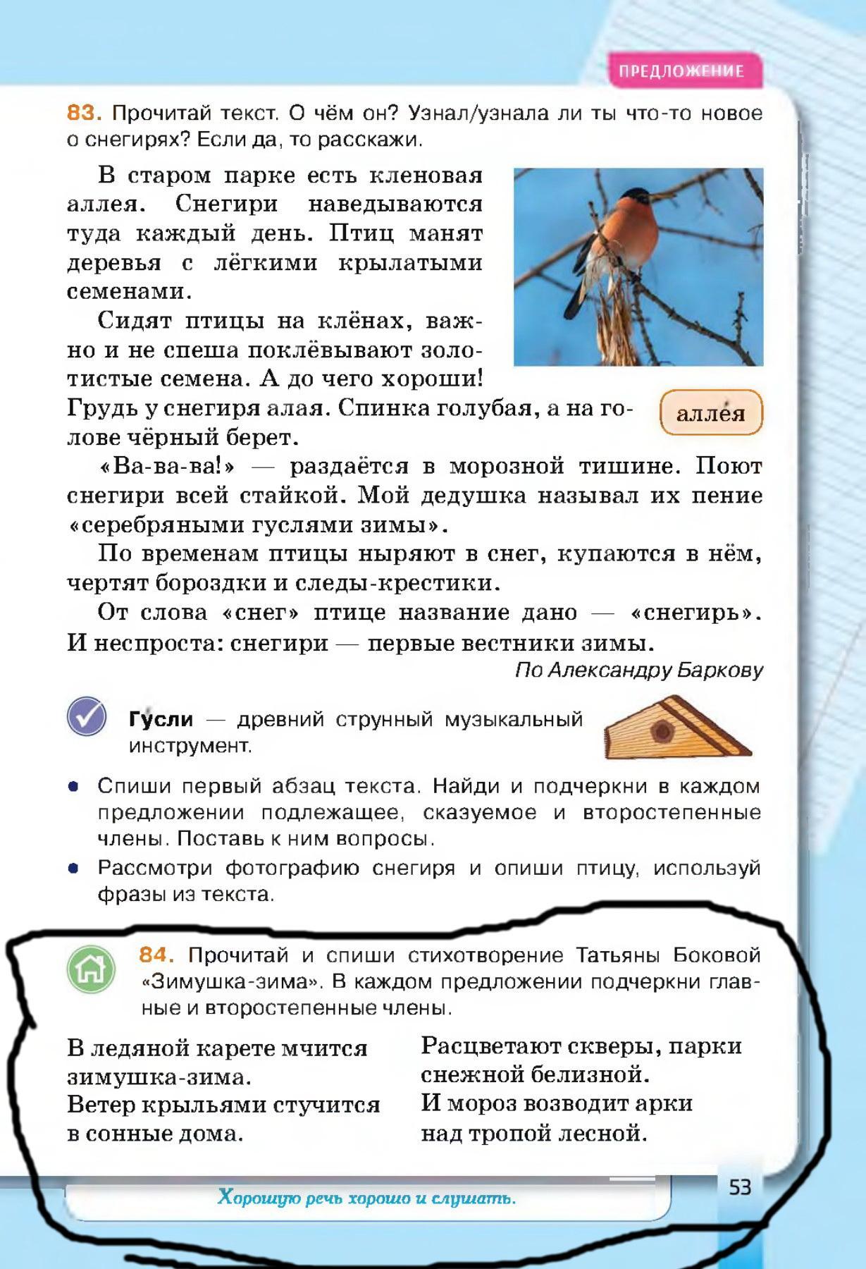 В_._ ледяной~ карете_._ мчится= зимушка-зима_._ Ветер_ крыльями_ стучится= в_. сонные~ дома_._. Расцветают= скверы_, парки_ снежной~ белизной_._. И мороз_ возводит= арки_ _ над тропой_._ лесной~.