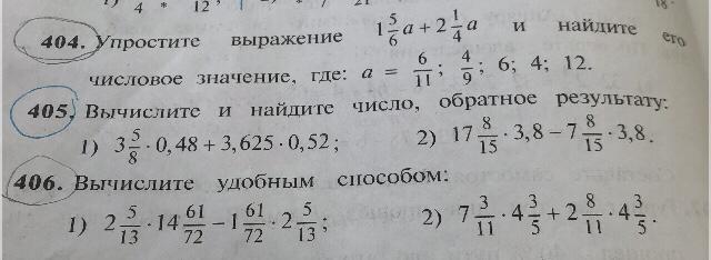 404. 1 5/6 a + 2 1/4 a = 1 10/12 a + 2 3/12 a = 4 1/2 a .