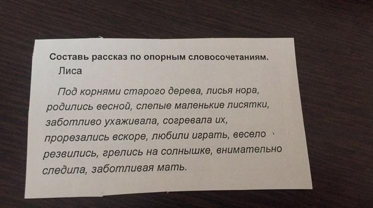 Под корнями старого дерева, была лисья нора. В ней жила беременная мать лиса, и с нетерпением ждала когда у неё родятся лисята. Вскоре у лисы родились слепые маленькие лисятки. Мать заботливо ухаживала за ними, согревала их в своих объятьях. Вскоре у лисят стали прорезаться глаза. Они повзрослели, и стали много играть. Они весело резвились на травке, грелись на солнышке. А заботливая мать внимательно следила за их играми, чтобы с ними ничего не случилось.