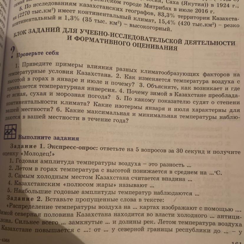 4) Казахстанским "полюсом холода" называют межгорную впадину Шаганатты на Алтае, где зарегистрирован абсолютный минимум температуры воздуха -54 С°