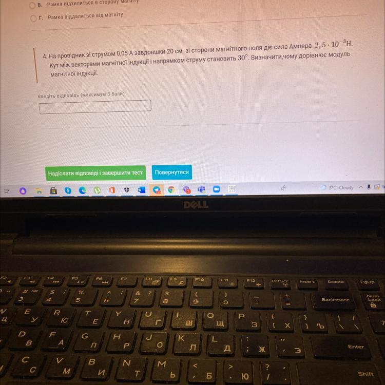 B=0,05×20×10-²×sin30°/2,5-³ =10-²×0,5 /2,5-³ = 2×10¹= 20 Тл