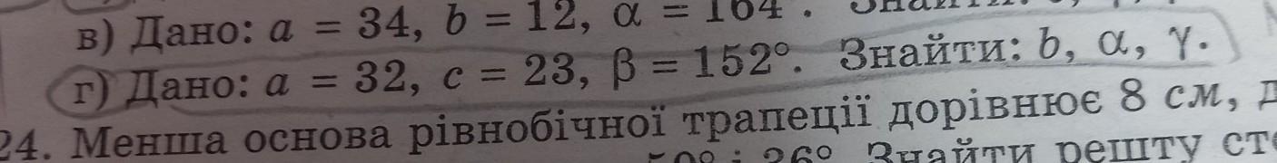 Ответ: b ≈ 53,4 , α = 16°, γ= 12°