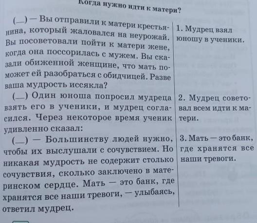 Перескажите притчу по плану. Добавьте в пересказ свои рассуждения о том, ситуациях нужно идти к матери. Запишите ваши пересказ