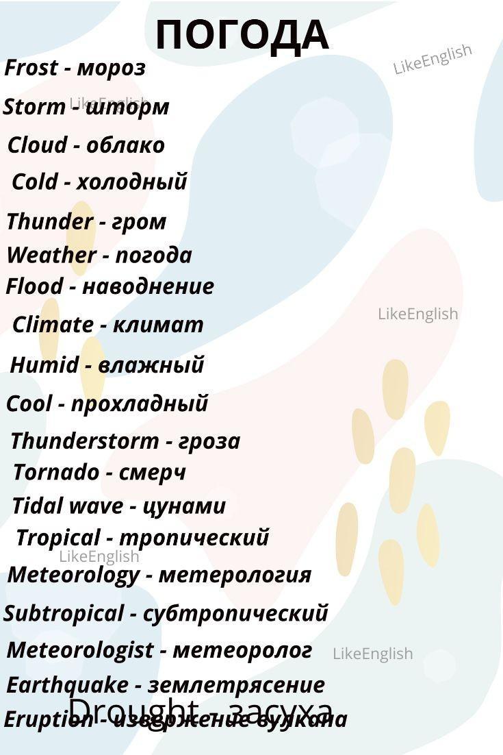 Нужно составить диалог на тему погоды, и притом включить как можно больше слов из этих двух файлов. В диалоге должны содержаться всё четыре вида вопросов: общий, специальный, альтернативный, разделительный. Заранее спасибо