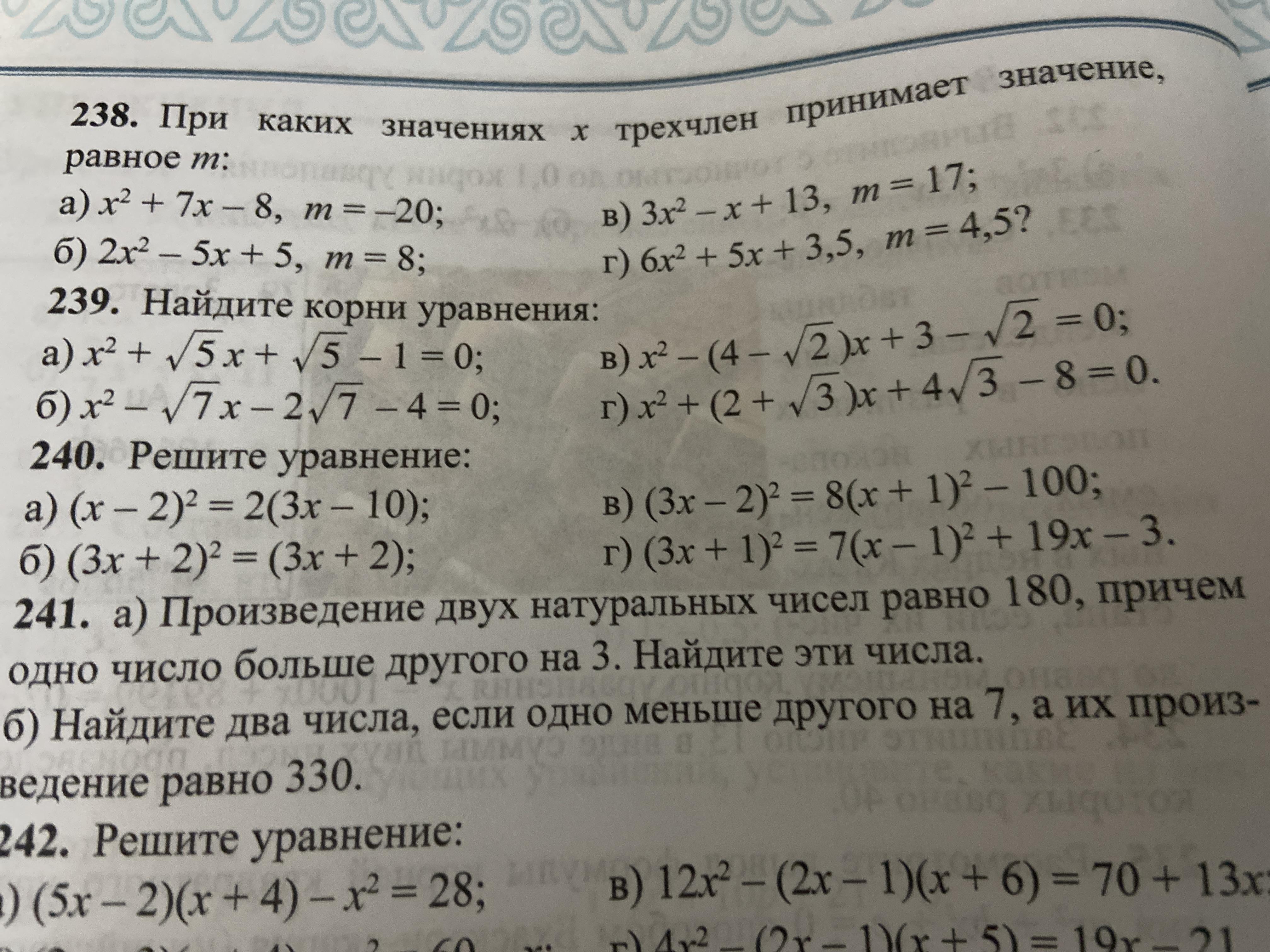 Для того чтобы решить №239, нужно возвести всё уравнение в квадрат и решить.