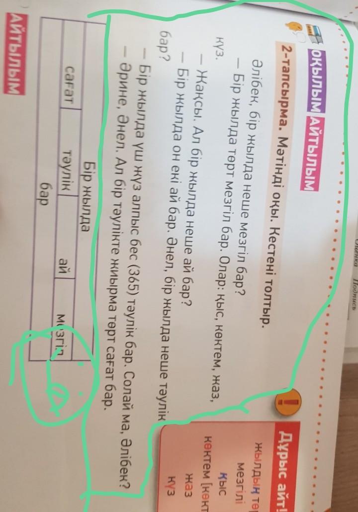 бір жылда 24сағат 365тəулік 12ай 4мезгіл бар