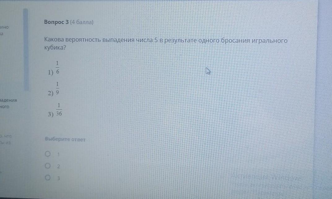 Объяснение: короче у игрального кубика 6 сторон, и только одна сторона на которой написано 5. (я знаю я фигово объясняю)