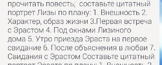 Утро приезда Эраста на первое свидание: «Еще до восхождения солнечного Лиза встала, сошла на берег Москвы-реки, села на траве и, подгорюнившись, смотрела на белые туманы, которые волновались в воздухе и. подымаясь вверх, оставляли блестящие капли на зеленой покрове натуры»