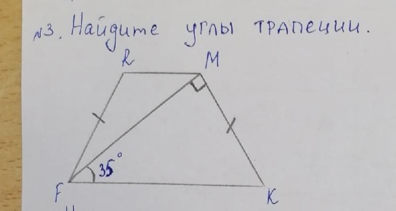 Угол K = 90-35=55° (т.к. треугольник FMK прямоугольный и нам известен один угол)