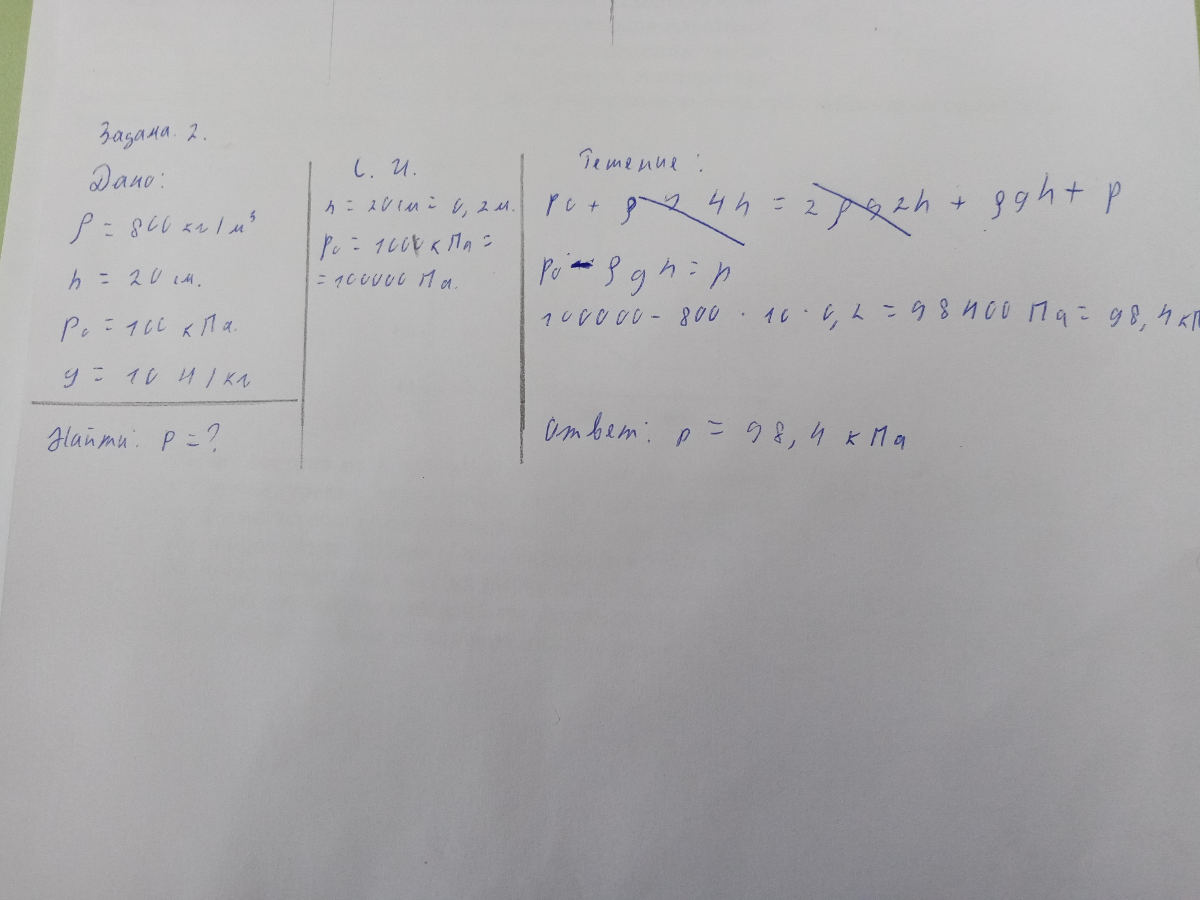 определите давление газа над поверхностью жидкости в точке а закрытого колена трубки изображенной на рисунке, если плотность ро=800кг/м^3,h=20 см, Р0(ноль маленький, ниже середины буквы)=100кПа