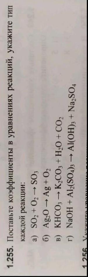 1.255. Поставьте коэффициенты в уравнениях реакций, укажите тип каждой реакции: