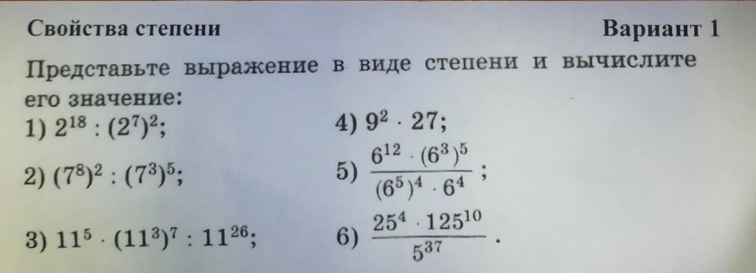 ответ: 1)16; 2)7; 3)1; 4)2 187; 5)216; 6) не смог решить