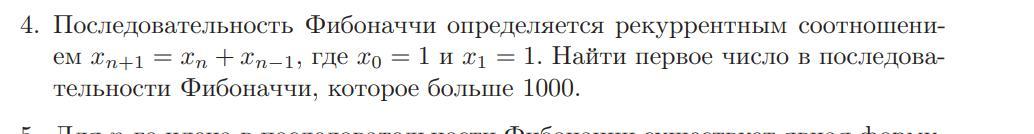 Просто переберем все первые числа Фибоначи и будем сохранять индекс числа. Получаем 16