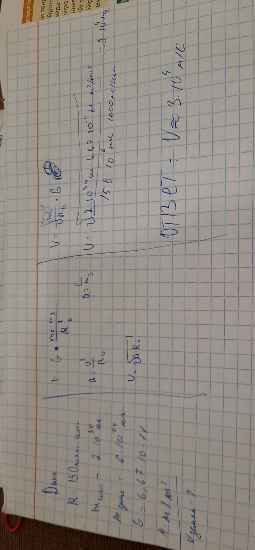 радиусом 150 млн. км. Найдите скорость Земли по орбите, если масса Солнца