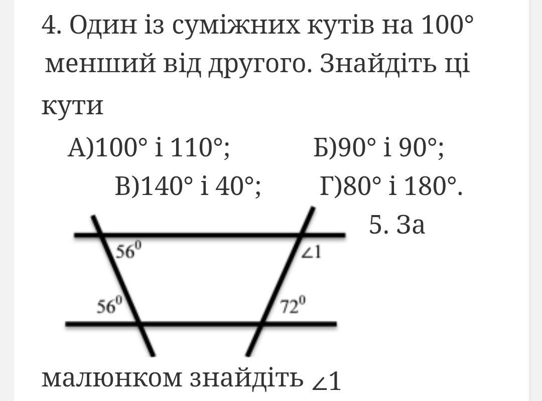 Угол 1 и угол 72 называются односторонними и их сумма 180 градусов
